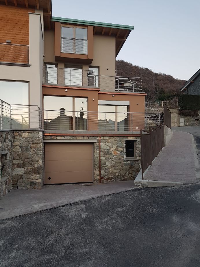 In foto vi è una costruzione da progetto esistente di una villa bifamiliare sulla collina di Aosta, costruita con le nuove tecniche energetiche, infatti la casa dispone di un cappotto termico da 16 cm, una pompa di calore aria/acqua per il riscaldamento supportata da impianto fotovoltaico e scambiatori d'aria per la salubrità degli ambienti. Casa in classe A4.